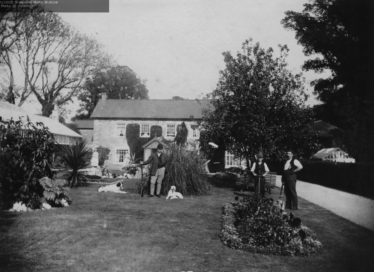 On the lawn at Tregonjohn. The figure holding the shotgun is probably Thomas Symons Croggon.