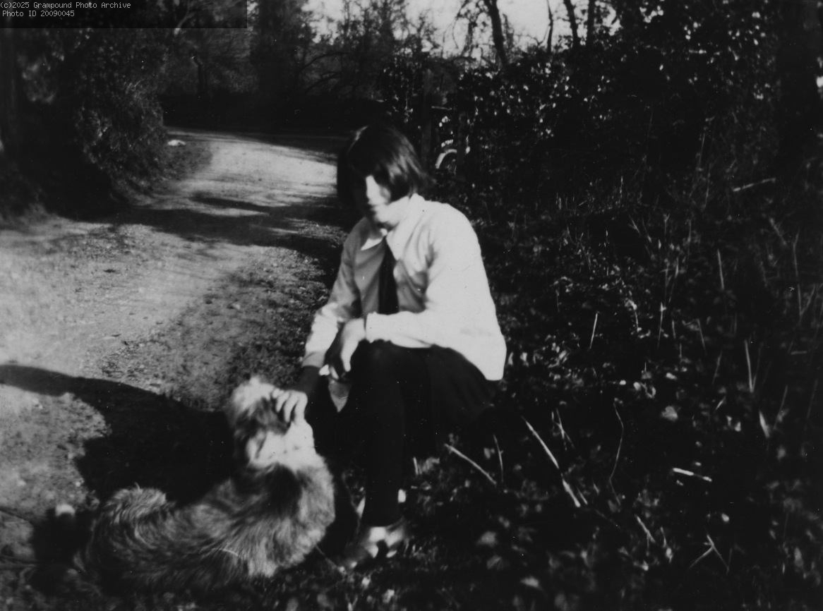 Molly Allen with neighbour's dog late 1920s.