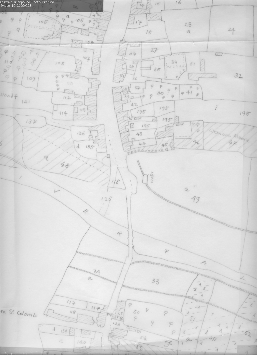 Land holdings map of western end of Fore Street and Old Hill (part 2), Grampound drawn by Mary Oliver. This is based on an original map drawn in 1831 by H St Aubyn. See appendix 1 to these notes for the key - available from Heritage Centre.