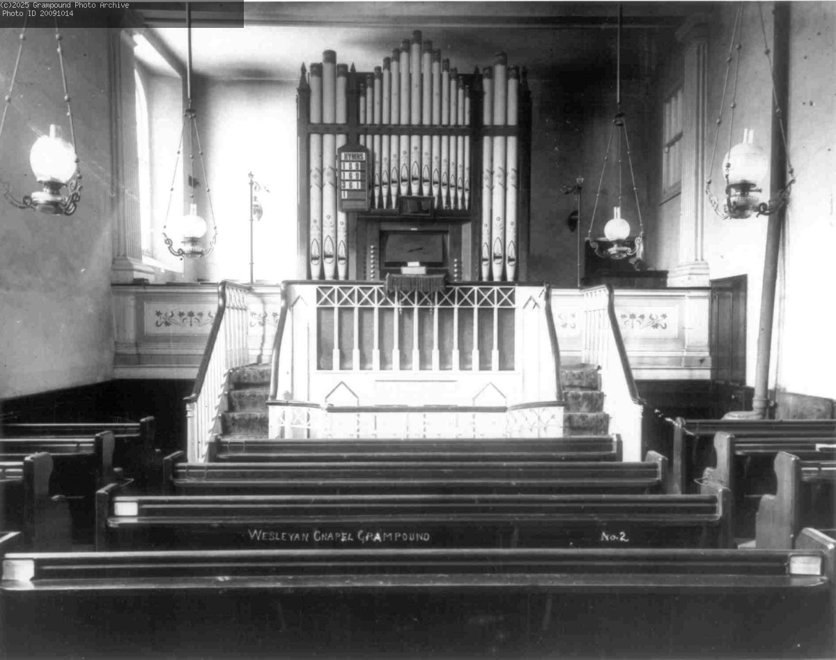 Grampound Wesleyan Chapel, sometimes known as Grampound Christian Bible Chapel, showing the interior. This building still stands in Creed Lane but has now been converted into a private residence known as the 'Old Chapel'.