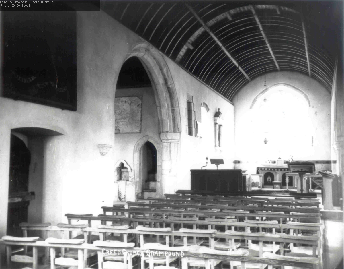 The interior of Creed Church after the 1904 restoration showing the chairs that replaced the old box pews.