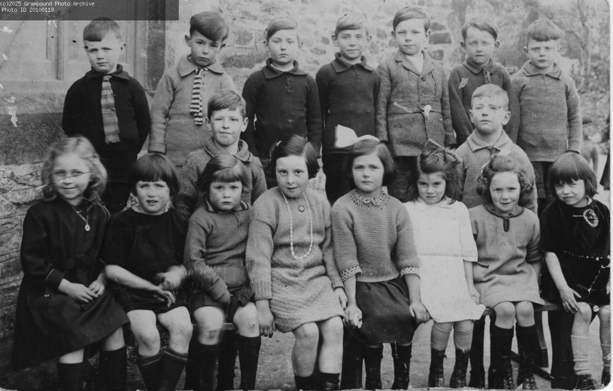 Pupils at Grampound School c 1930s; this is a better version of 0076. The girl in the centre of the front row is Vera Bragg, later Mrs Webb.