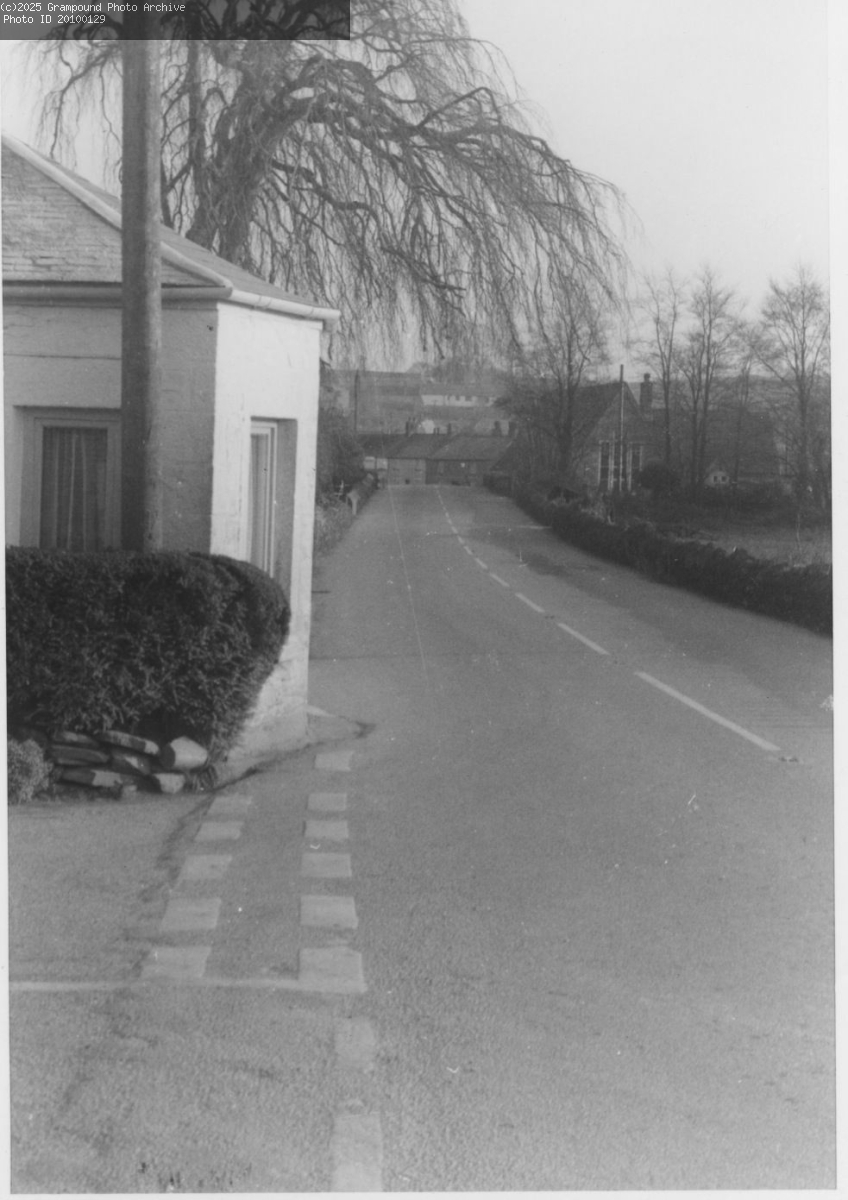 Old bridge looking east. The gatehouse, a former toll booth, is on the left and the allotments are on the right.