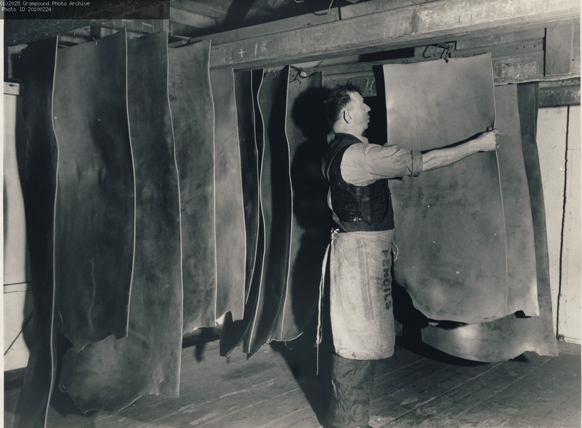 Jack Allen hanging up finished leather to dry.