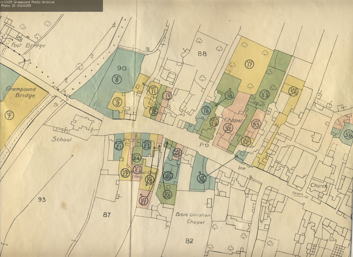 Plan of Lots (scale 1 - 1250) - east of Grampound Bridge - Fore Street from the Church to the school. Lots 7,8,9,11,12,13,16,18,19,21,22,23,24,25,26,27,28,30,32,33,36,39,46,49,52,53