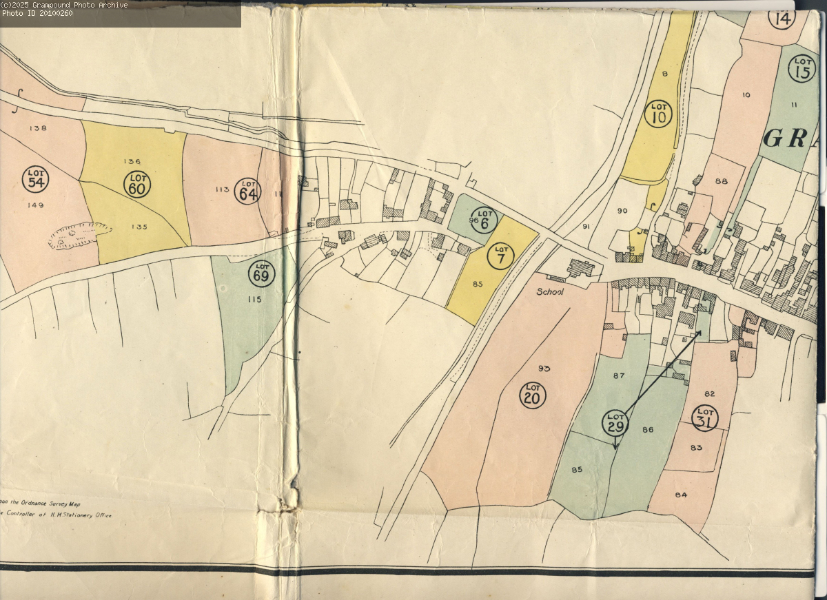 Plan of Lots 6,7,10,15,20,29,31,54,60,64,69 (scale 1 - 2500) - SW section of village including Bermondsey, Old Hill, lower Fore Street& Mill Lane.