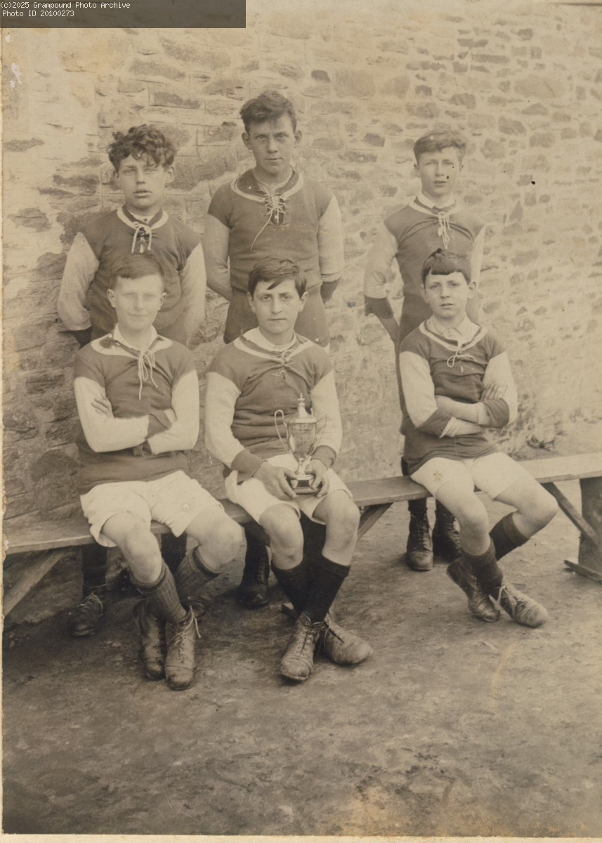 Grampound School 1925. Back - Edward Mannell, Percy Cundy, William Juleff. Front - Unknown, Frank Spry, Leslie Pollard.