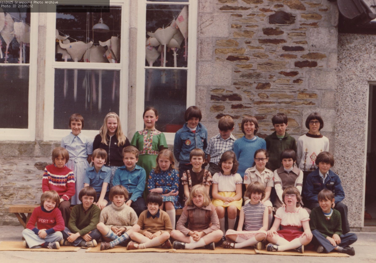 Grampound School 1978 - Juniors Class I. Back - Sandra Letcher, Jane Pearce, Paula Noy, Robert Pollard, Adam Pearce, Patrick Warne, Andrew Cundy, Gary Still. Middle - Sean Still, Simon Raynor, Ian Churchill, Ruth Waters, Tina Warne, Janice Sewell, Karen Blayney, Emma Rowe, Tony Ford. Front - Andrew Staines, Roddy James, Richard Tregunna, Shaun Mannell, Natasha Still, Emma Pearce, Emma Andrews, Ian Heather.