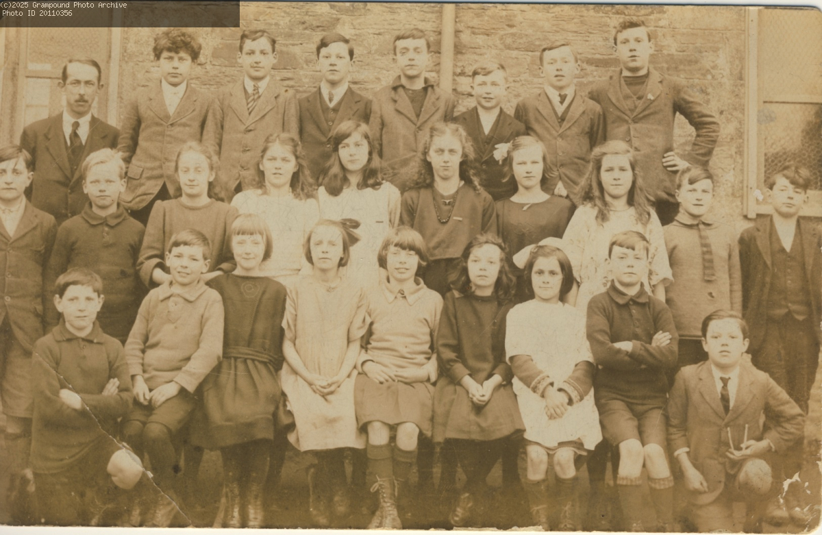 Grampound School, probably 1920s. On the left is the Headmaster 'Boss' Harding.