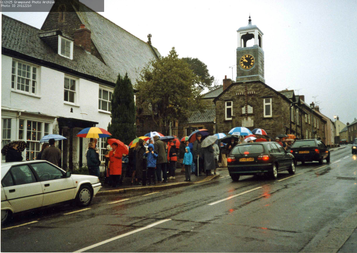 Waiting in Fore Street for Millennium photo shoot in the rain.