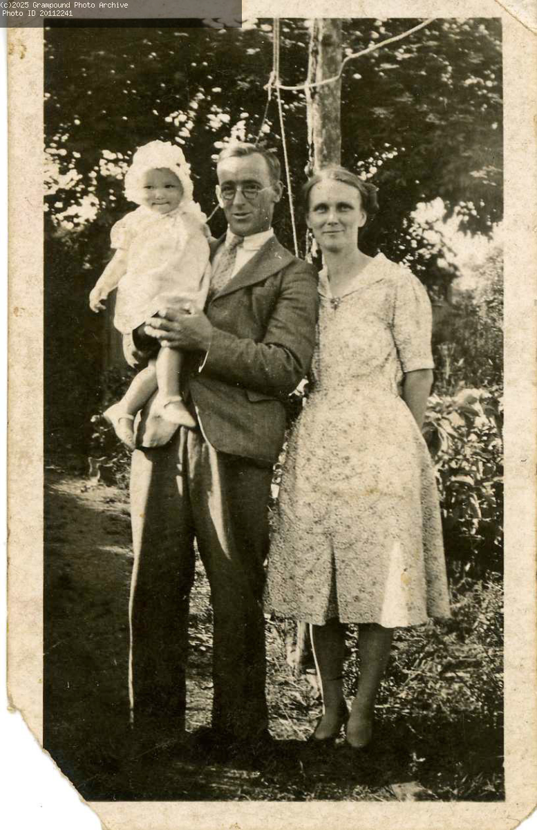 Joan, cousin of George Edwards, with father and mother (Mr and Mrs J C Mannell)