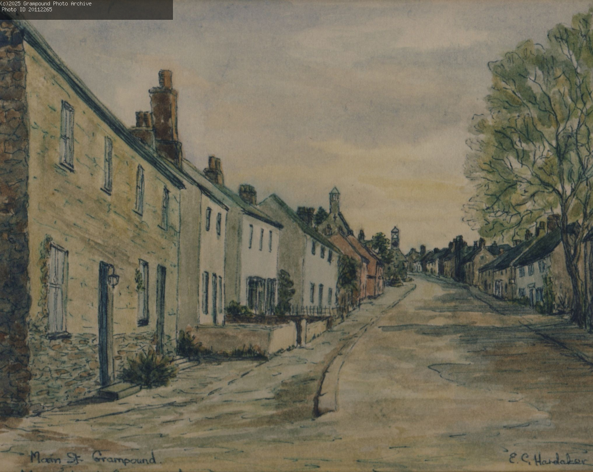 The artist was Edith Hardaker and it is believed that it was executed in the 1980s. Edith Hardaker only took up painting when she retired at 70 but quickly became so accomplished in watercolour work that she taught classes in the subject. As the mother of Peter Hardaker, she was a frequent visitor to Grampound and painted many views of the village and surrounding area.