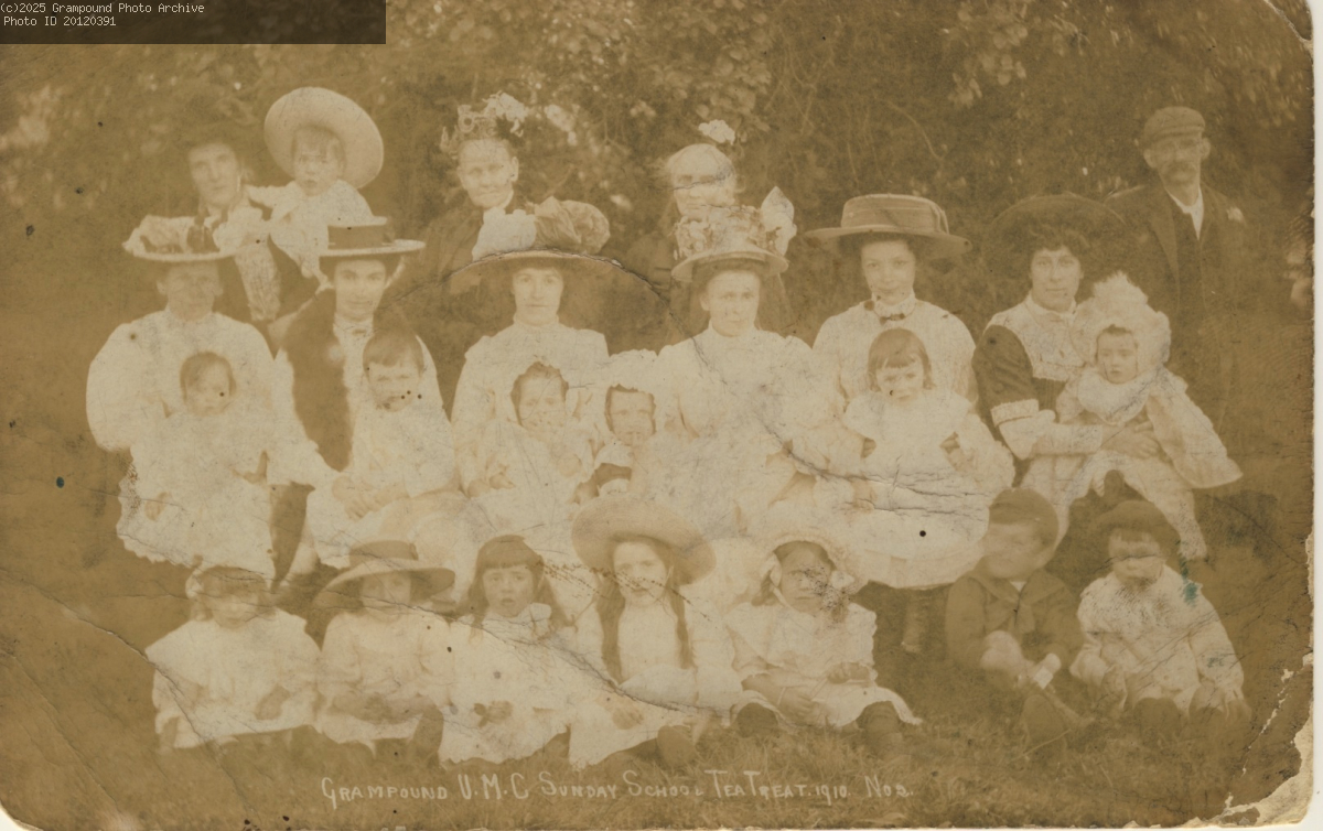 Grampound United Methodist Chapel Sunday School Tea Treat 1910. This was a postcard.