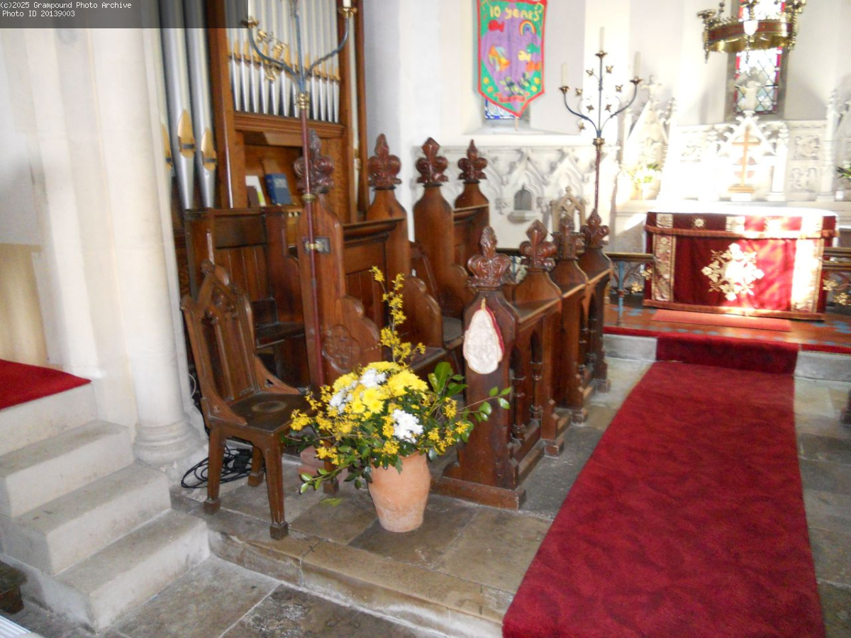 The interior of St Nun's Church in September 2013, immediately prior to the removal of the wooden pews in the choir.
