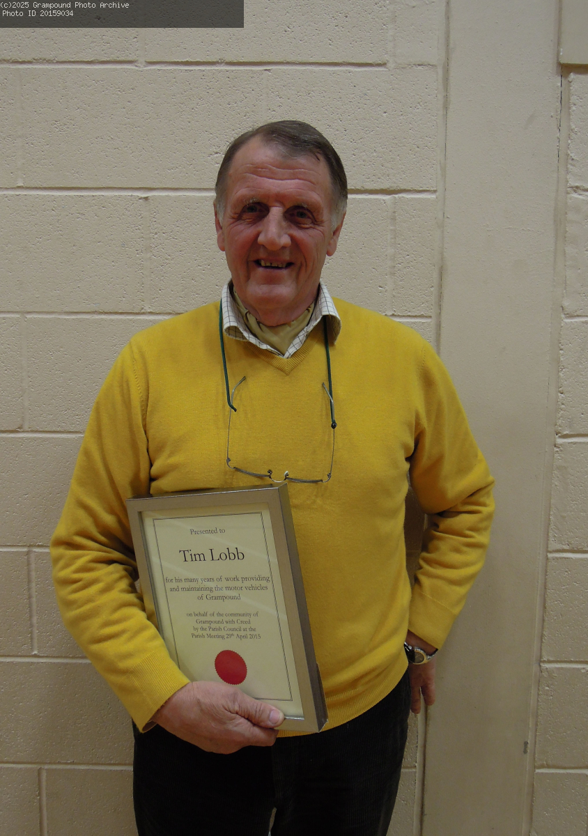 Grampound Parish Council initiated the Parish Awards; to be given to people who have served the village. Tim Lobb was born in Grampound, has run a business here all his working life, has been a Parish Councillor and has supported the village in many other roles over the years. He received the 1st Parish award in 2015.