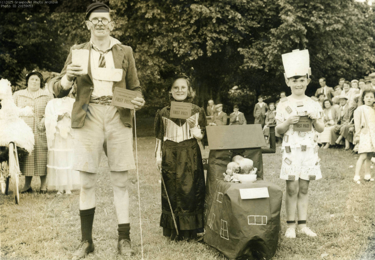 Grampound carnival 1957. Frank Paramor with children, M & Norman (Norrie)