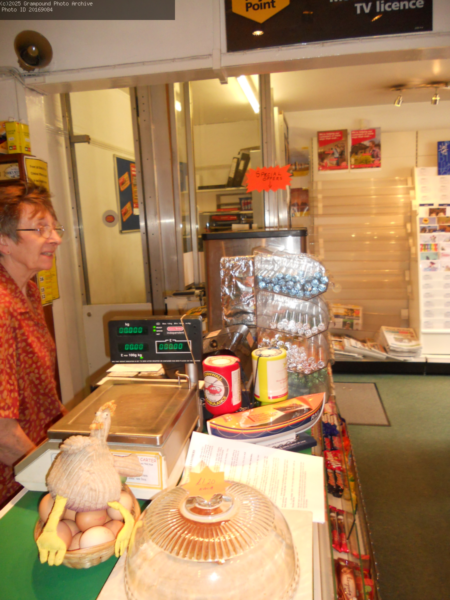 This is inside of The Hollies Store and Post Office showing the counter. The lady on the left is Jenny Gingell who was the owner of the shop with her husband Graham. This was taken on the 29 June 2013 which was the last day.
