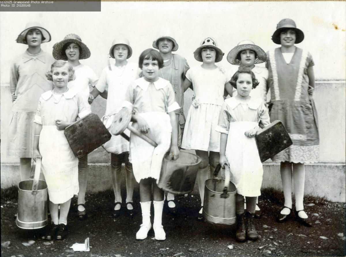 Hetty Rogers, May Knowles, Susie Tregunna, Cora Brown, Marnie Philp, Eleanor Mannell, Ruth Langdon. Front row Liley White, Joyce Jones, Betty Pascoe. Grampound School Opera 1927