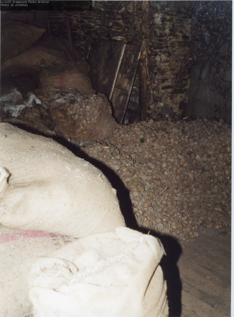 These large vallonia acorns come from Turkey. They were ground in a 'mincer' and added to the tanning liqour.