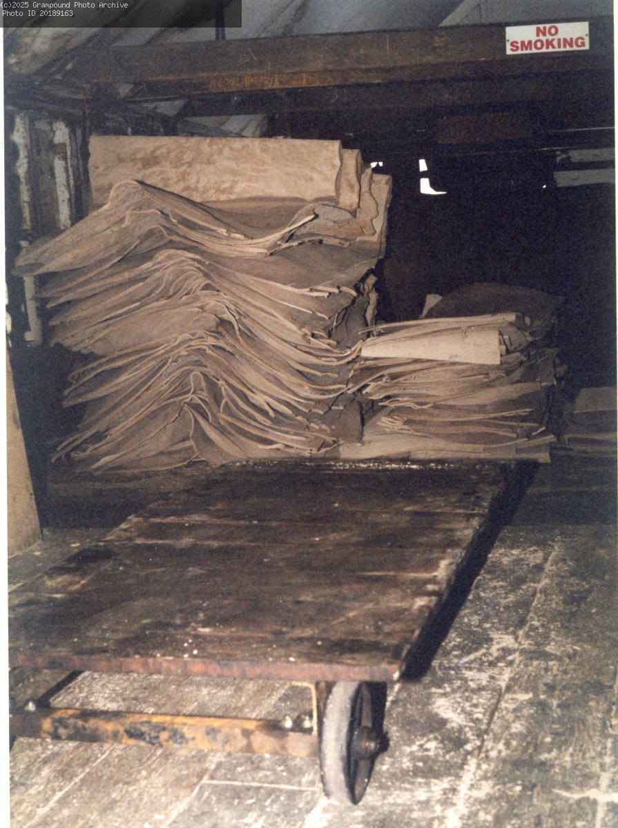 sheets of leather dried and waiting to be finished.