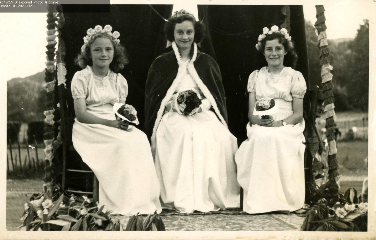 1949, first carnival after the war, Queen is Jean Juleff (later Hicks), attendants are Joan Mannell and Joan Richards.