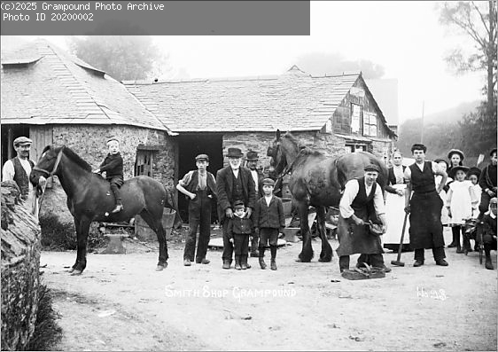 crisper copy of Bert Cundy shoeing a horse at the blacksmith shop, Bermondsey(see 20190538) This was knocked down in the 1980's after his death to widen and straighten the road to Truro.