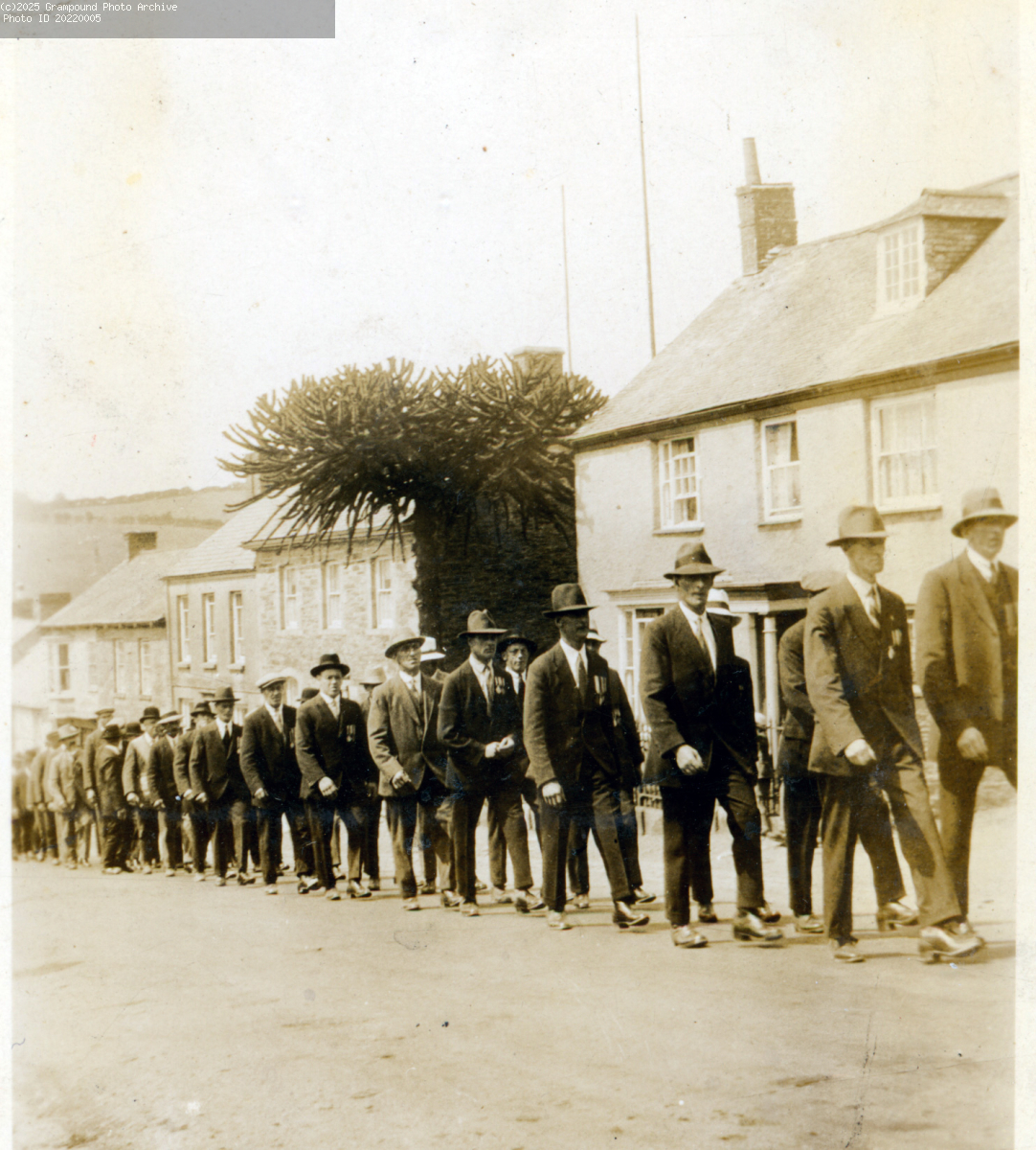 Hospital Sunday 1928, men marching up Fore Street